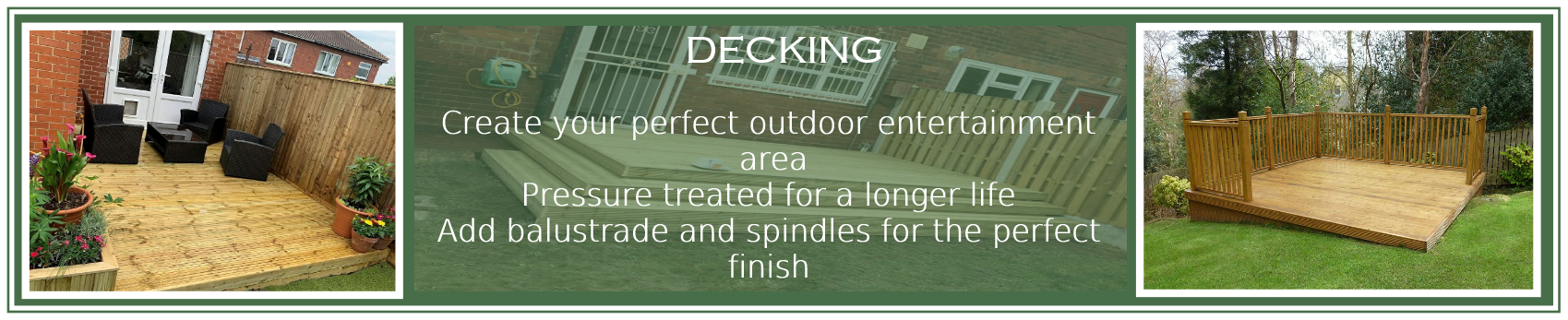 Use along with our range of timber decking joists to create the decking of your dreams. Decking can provide an excellent area for relaxing or entertaining in your garden. Create a private area around your decking by using some of our fencing panels around your decking.