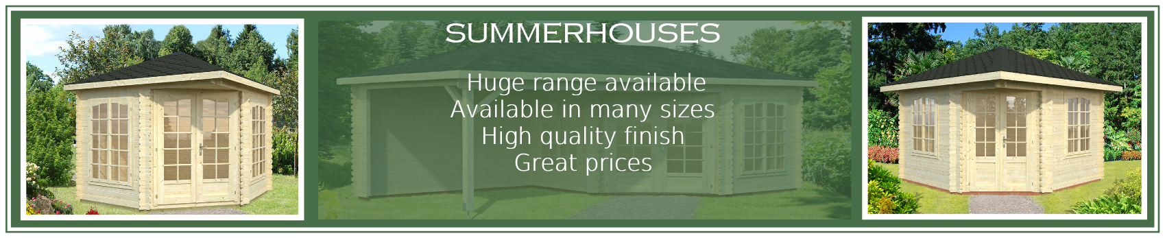 Atkinsons offer one of the largest displays of summerhouses in the north. The timber used in our buildings is slow grown from a sustainable wood source and produces a log cabin with a dense timber. With our huge range of buildings we have one that is suitable for any purpose. Wether you require a small or a large summerhouse for a home office we will have the ideal one for you. If you have ever thought about buying a summerhouse or just wondering if a summerhouse would be suitable for your needs please give us a ring to discuss your needs.