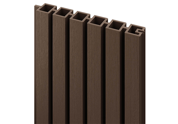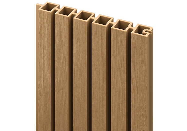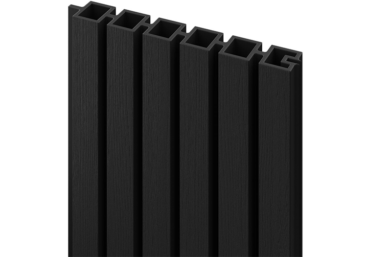 2. Modular slatted panel system of 6 boards and 2 horizonal u-shaped cross rails to make 1.8m high panel