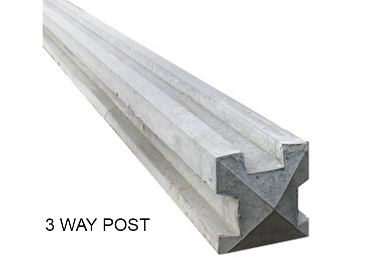 3 Way concrete fence posts suitable for all Atkinsons fencing panels. Can be used with concrete or Eco fencing gravelboards. Posts are steel reinforced.