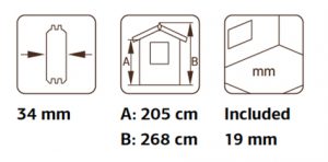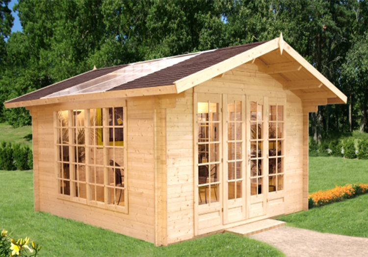 The exterior is made from 34mm tongue and groove interlocking timbers. This Minsk log cabin has interlocking Polycarbonate Roof panels allowing natural light to flood in. Pressure treated joists are used as standard.
