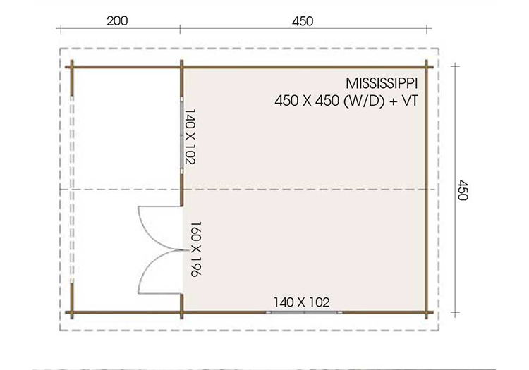The Mississipi is constructed from a 45mm thick log and comes with an arch double door and window. Comes complete with terrace and high quality roof shingles.