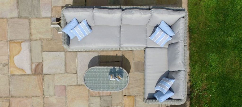 The Oxford corner set combines the classic look of the Winchester with a beautiful grey coloured weave. The grey cushions sit perfectly with the weave, creating a modern elegant style. Made from the highest quality material woven onto a powder coated aluminium frame, ensuring use all year round. Can be positioned with the longer side either left or right.